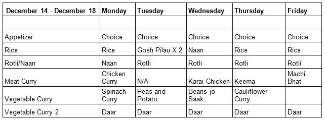 We've attached our menu starting, Monday, December 14th. This food is available for take out at our store