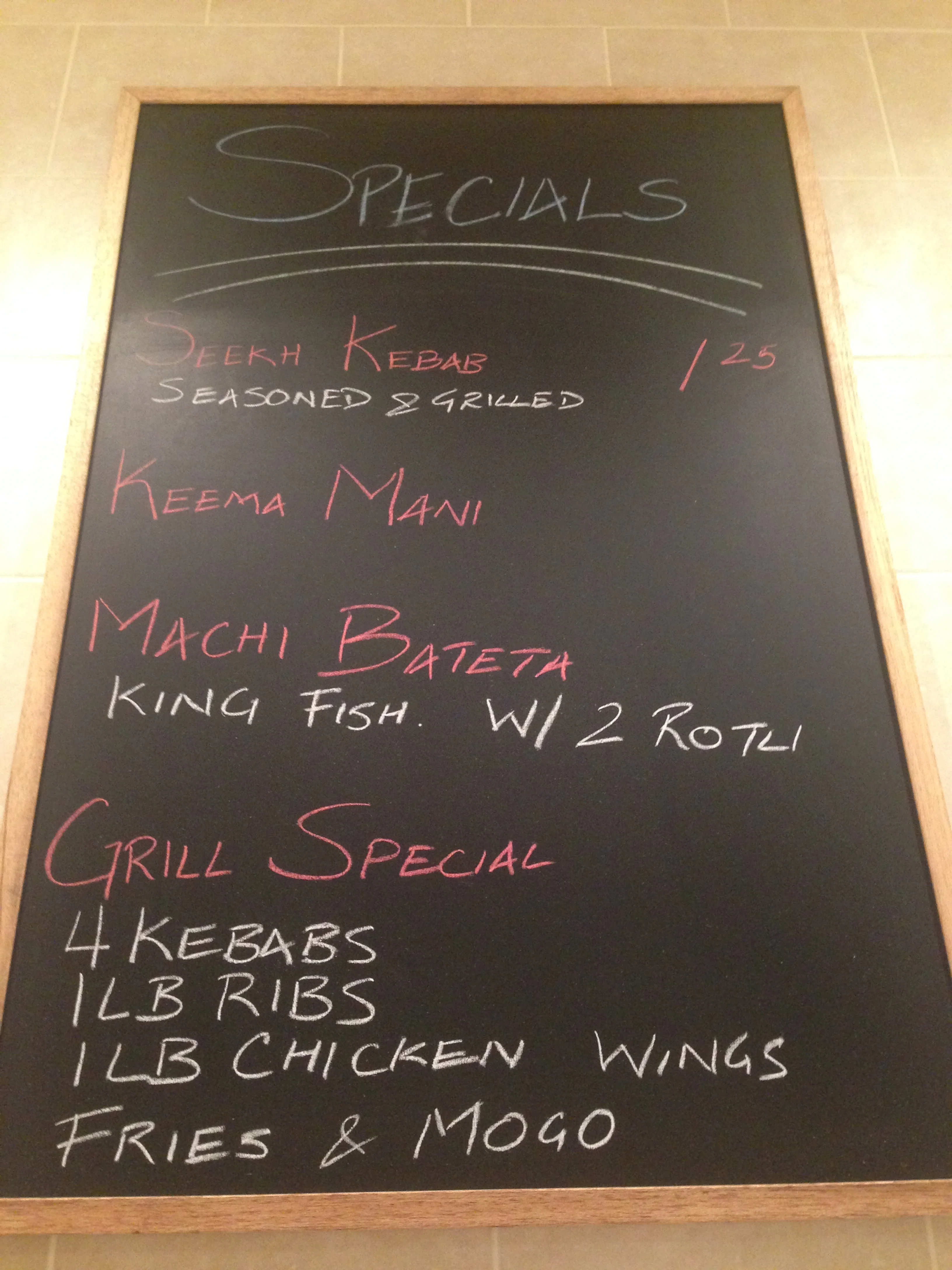 Pan Fried King fish with potatoes and peppers. Served with two rotli