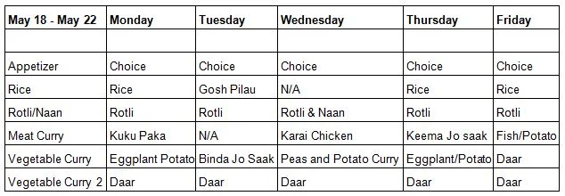 We've attached our menu starting, Monday, May 18th for our tiffin service.