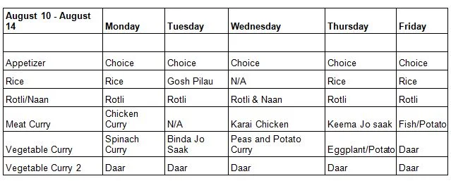 We've attached our menu starting, Tuesday, August 11th for our tiffin service.